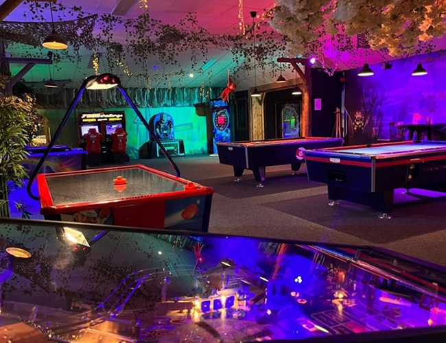 De hal is uitgerust met een gevarieerd aanbod aan spellen: speel een potje op de pooltafel, daag je vrienden uit voor een wedstrijdje airhockey, probeer de flipperkasten uit of ontdek een mix van klassieke én moderne arcadespellen.