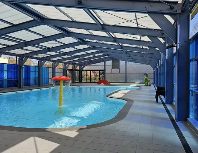 Er zijn twee volledige openluchtzwembaden waar je op warme dagen heerlijk kunt afkoelen en genieten van de zon. Daarnaast is er een deels openluchtzwembad dat overdekt én verwarmd is – ideaal bij wat minder mooi weer of om het hele jaar door lekker te kunnen zwemmen. Voor de allerkleinsten is er een speciaal kinderbad, veilig en overzichtelijk, waar ze heerlijk kunnen spetteren en spelen.